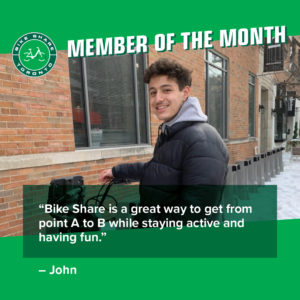 “Bike Share is a great way to get from point A to B while staying active and having fun. There’s no need to worry about leaving your bike on the street or looking for parking in a car. Bike Share is straightforward, accessible and, one of my favourite ways to get around the city.”