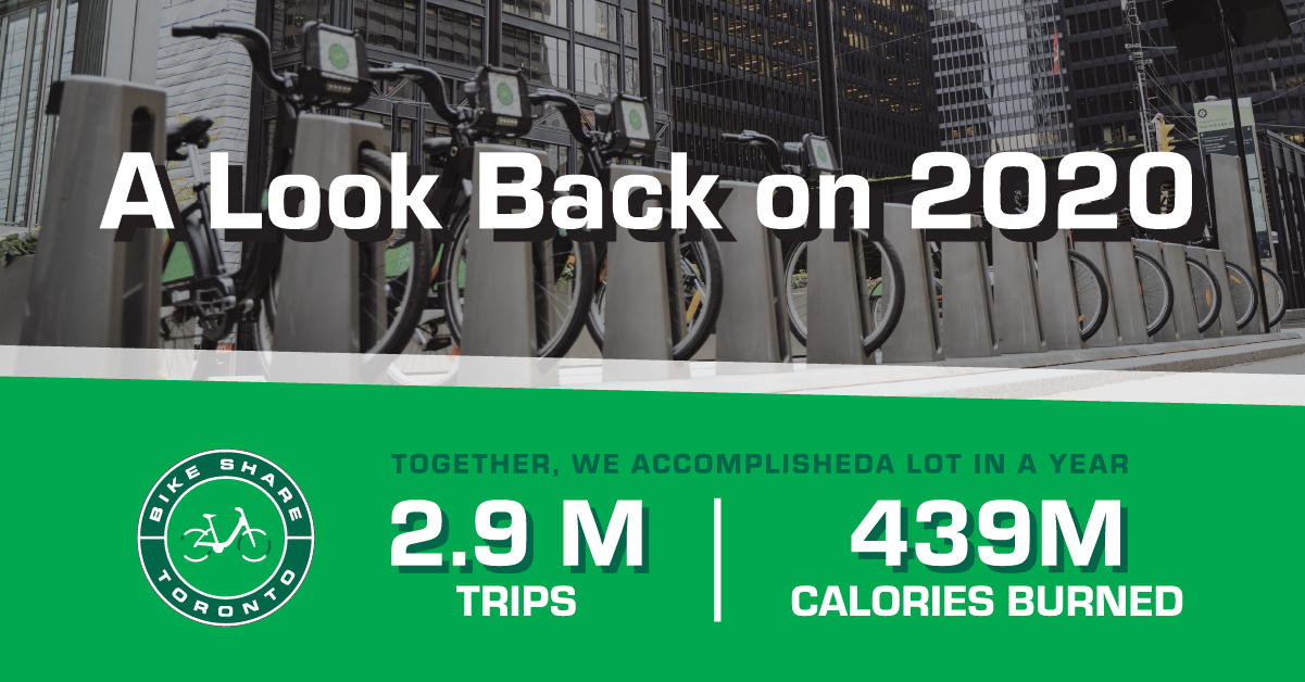 In the face of the pandemic, Bike Share Toronto helped shape how our city moves. Whether it be running essential errands, commuting to work, exercise or just getting out of the house, Bike Share Toronto became a key part of Torontonians’ daily COVID-19 routines. Having the busiest year in Bike Share Toronto history, we welcomed a record-breaking number of returning and new riders to the bikeshare family. We look forward to serving our riders in 2021 as we continue to operate a key piece of Toronto’s transportation network.