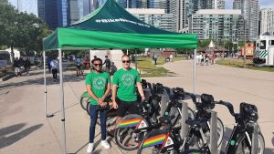 Our team was ready at our Bremner Blvd/Rees St station with Valet service right across from the Rogers Centre.Our Mobile Community Ambassadors had a great time greeting game-goers, answering questions, giving out the exclusive $1 ride code and joining in on the Pride fun. Next time you’re headed to a Jays game, take Bike Share for a hassle-free way to get to the game with friends!